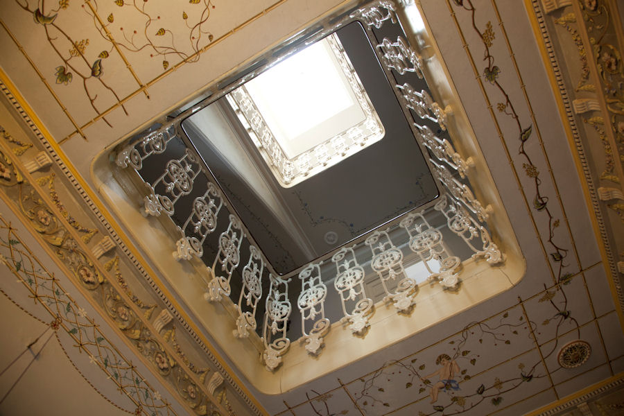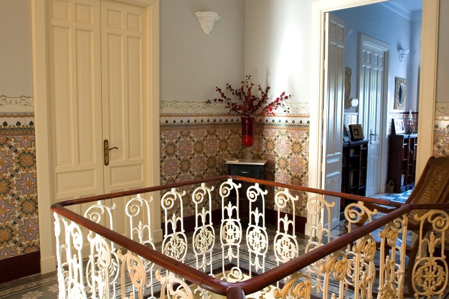The heart of the house is the central staircase which is flooded by natural light from the glass rooftop pyramid - a typical Andalusian architectural feature in buildings of its era.